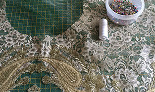 Often highly decorated, the tutu's top plate is separately prepared and fixed to the tutu base before the bodice is fixed in place. The plate is sewn to the top tutu layer to make sure that it stays in place, even during partnering work.