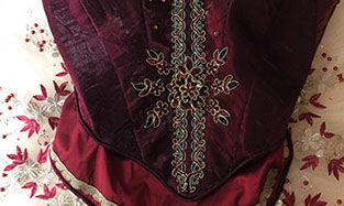 Lots of options will be discussed at the design stage, the possibilities are endless, chose different top lines, inset panels, sleeves, cuffs etc. As with the top plate the bodice is often highly decorative with lots of things to make the costume sparkle and catch the eye.