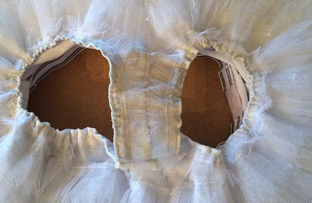 This is pull-on style made on a lycra knicker, with 1 inch elastic waist band. 6-8 layers of gathered netting, elasticated leg openings, hooped, and hand tacked through the layers. Choose from black or white.